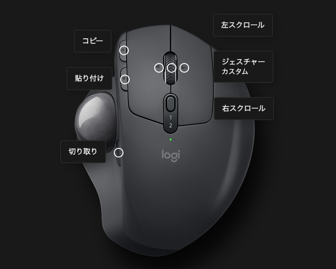 トラックボールマウスを使いたい場合はMX Ergo Sです。